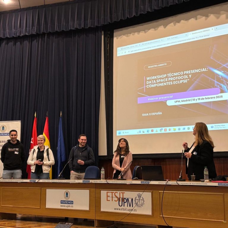 Los pasados 18 y 19 de febrero de 2025, la Asociación Gaia-X España, en colaboración con la Universidad Politécnica de Madrid (UPM), Tecnalia, Tekniker, la International Data Spaces Association (IDSA) y la Fundación Eclipse, organizó un workshop técnico presencial centrado en el Data Space Protocol (DSP) y los componentes de espacios de datos desarrollados por la Fundación Eclipse.